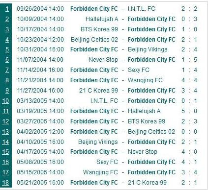 Forbidden City had their difficulties over outsiders 21 C Korea who tried their best, but at the end just could score one more goal to gain any points from F. City in this match. The match was deceided in the first half where Nick(the man of the day who scored all Forbidden City’s four goals) scored a clean hattrick (16., 18. & 30.) while 21C’s Lee H.S. (40.) could only pull one back for the 1:3 halftime lead for F. City over 21 C Korea. In the second half, F. City took it rather easy, while 21 C Korea started fierce with Yoon J.T. (47.) and Kim J.G. (48.) scoring once each to level the match three all. But then Nick scored his 4th goal (65.) for 3:4 which remained the ending score.