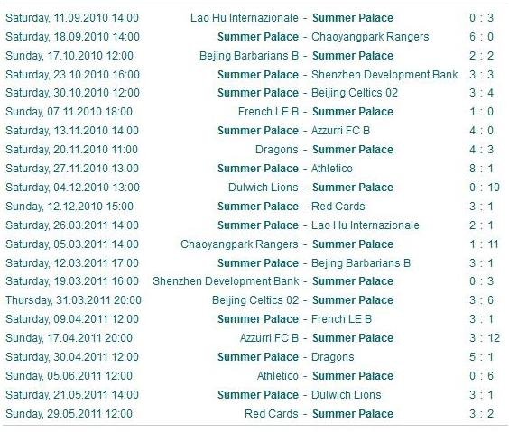 Below are the match reports for Summer Palace games in the 2010-11 season, which were prepared by the IFFC (special thanks to Rob Gonella).